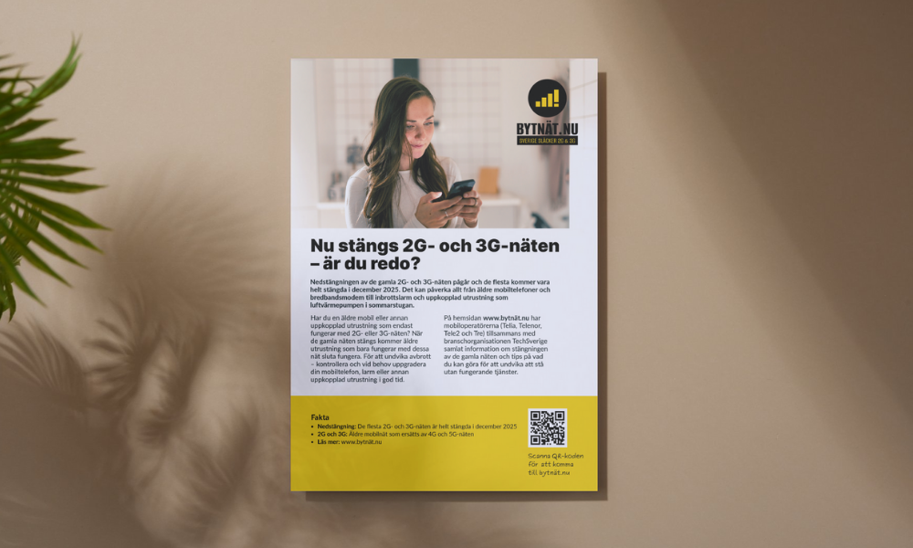 Har du en mobil eller annan enhet som endast fungerar med 2G eller 3G? Just nu och under de närmsta åren kommer 2G- och 3G-näten att fasas ut i Sverige och allt som bara är kopplat till dessa nät slutar fungera. Det påverkar många, både företag och privatpersoner, som använder enheter uppkopplade till 2G och 3G. Det kan handla om allt ifrån larm, kortterminaler och noder i elnät till äldre mobiler och nödtelefoner i hissar. Ta därför reda på om detta gäller dig, din organisation eller företag och byt till enheter som fungerar med 4G, 5G eller annan modern teknik.